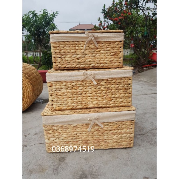 khay Lục bình Sz M có nắp có lót vải free ship